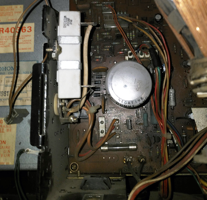 So I bought it for her. And off to Ebay I went for replacement parts. Luckily the Tube and mainboard were intact; but there were a fair amount of damaged components on the monitor chassis. Blown fuses, blown/leaking caps, broken width coil, and the Flyback Transformer was cracked completely down the side and oozing black goo. Fortunately, between Ebay and Uncle Tim’s stash of ancient components; we were able to bring it back to life!